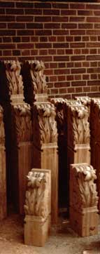 Architectural Carving Woodcarving has been employed throughout civilisation to adorn our architecture, enriching our most precious buildings with superbly crafted decoration to create the architectural heritage that we value so greatly today. The tradition continues both in the preservation of the past, and by carrying these rare skills forward to the present day. This workshop has extensive experience in the restoration and refurbishment of historic buildings, and in modern developments where the sumptuous effect of architectural woodcarving is desired.We are well versed in the architectural styles of most historic periods, with an intuitive understanding of the particular nuances of each individual style, this being of particular importance when producing work in sensitive situations. Where woodcarving is placed in a historic setting, the importance of the building demands that additional carvings are in complete sympathy with their surroundings. We have been commissioned on many prestigious developments, producing the carved architectural elements such as corbels, column capitals and classical motifs necessary for the completion of specialist projects. We liaise with architects, manufacturers and interior designers, along with discerning private clients, to bring projects to a successful conclusion through dialogue and dedication. For other fine examples of our architectural carving visit the Prestigious Works Folio section of this website. Drawing on many years of experience at the higher end of this field, this workshop may be relied upon to satisfy your most demanding carving requirements. |